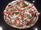 Hazelnut chocolate, fresh fruit & powdered sugar with vanilla drizzle & fresh mint leaves.