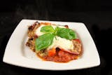 Grilled eggplant meets a delectable tomato sauce, all covered in crispy gooey fresh melted mozzarella and Parmigiano, and hints of aromatic basil on a crisp yet tender homemade crust!